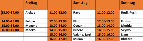 Weiter unten findet ihr den Schichtplan. Falls ihr an der eingeteilten Zeit verhindert seid, wären wir froh, wenn